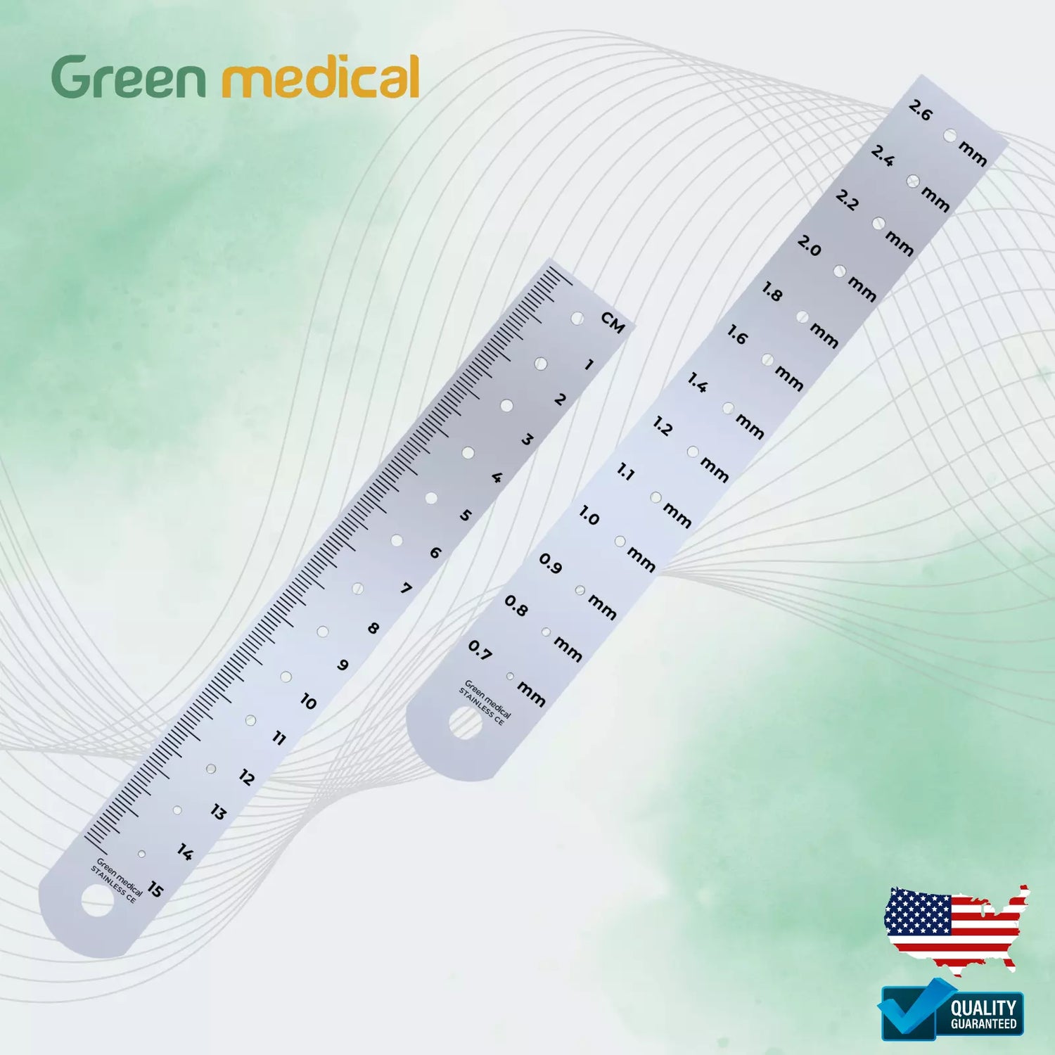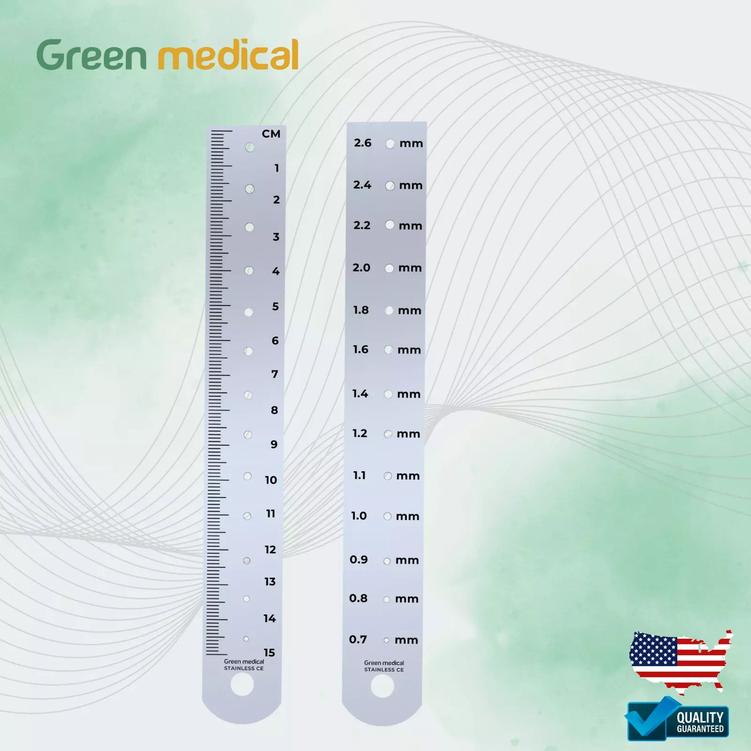 Experience precision with the Green Medical Measuring Gauge Scale, designed specifically for K-Wire applications. This versatile tool is an essential instrument for various medical disciplines, including Orthopedics, Otolaryngology, Orthodontics, and Medical Laboratory settings. Crafted with meticulous attention to detail, this scale is made in Pakistan and features measurements ranging from 0.7mm to 2.6mm, catering to a wide range of surgical and procedural needs. The robust design ensures durability while maintaining high accuracy, making it a reliable choice for medical professionals. Its user-friendly interface allows for quick and easy readings, facilitating efficient and effective treatment planning and implementation. Whether for drilling bits or screw measurements, this Measuring Gauge Scale is a practical addition to any medical practitioner's toolkit.