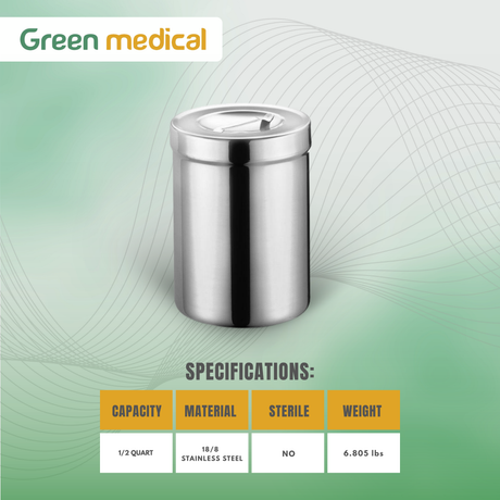 Stainless Steel Dressing Jar – 1/2 Quart Reusable Medical Storage Container