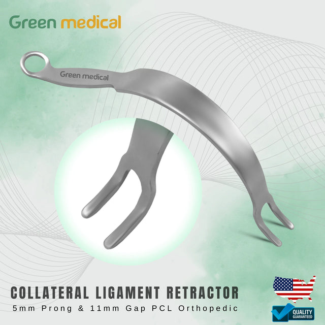 The Collateral Ligament Retractor features a 5mm prong and an 11mm gap, specifically designed for precise exposure during PCL orthopedic procedures. Its ergonomic design ensures stable tissue retraction, enhancing surgical visibility and accuracy. Crafted for durability and reliability, this instrument supports efficient ligament repair and reconstruction.