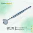 Handle: The handle is ergonomic, designed for a comfortable grip, which allows the dentist to maneuver the mirror easily while maintaining control during the examination.