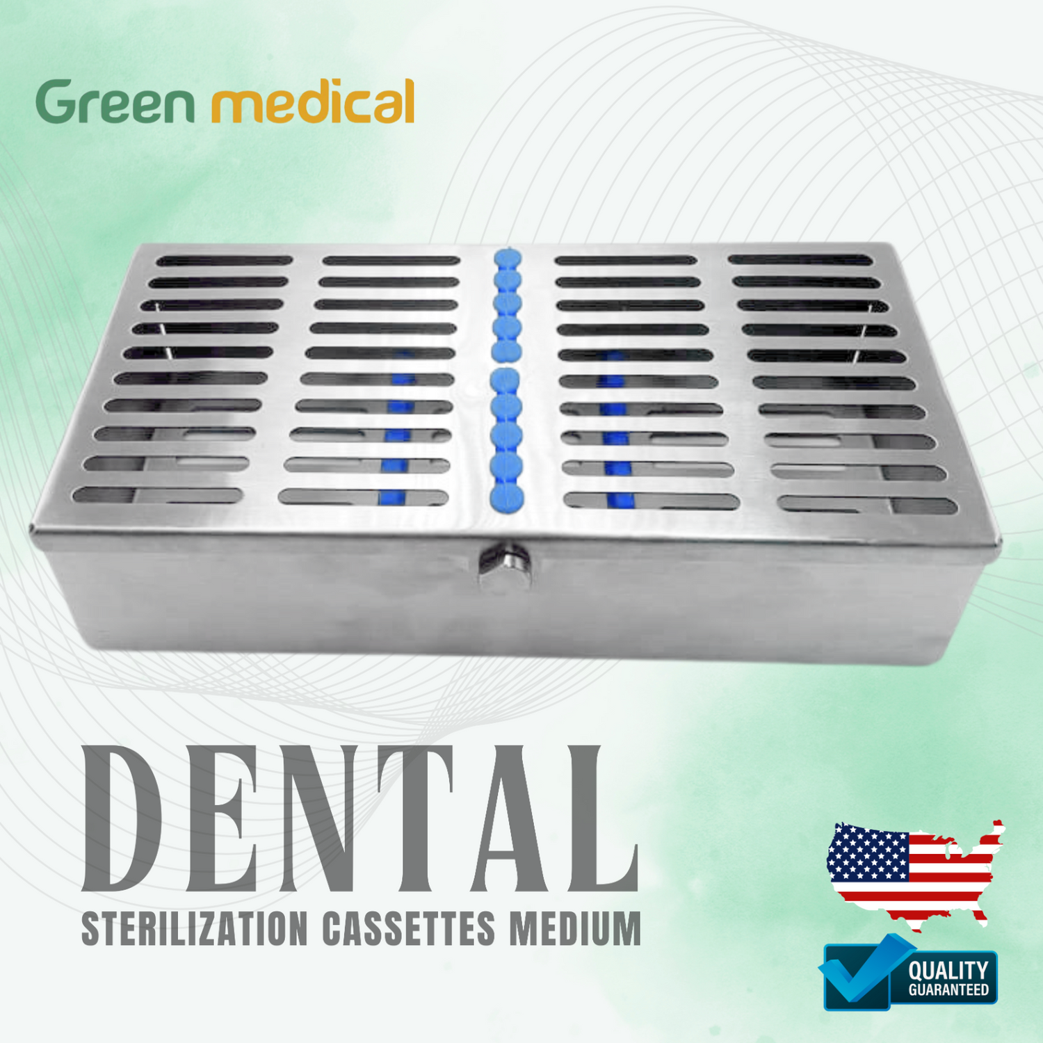 These cassettes are sterilized in autoclaves or ultrasonic cleaners and help ensure instruments are hygienic, easy to access, and safely stored until needed for dental procedures.
