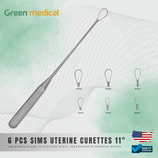 Sims Uterine Curettes Set – 6 Sharp Blades (Sizes 0-5), 11” Surgical OB/GYN Instruments – German Stainless Steel