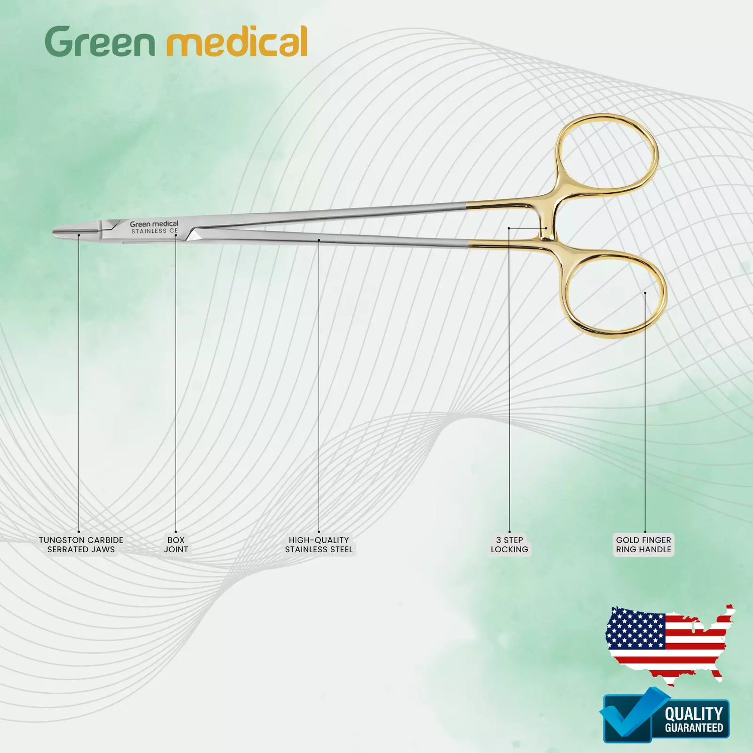 - Straight: Refers to the shape of the needle holder, meaning it is not curved.