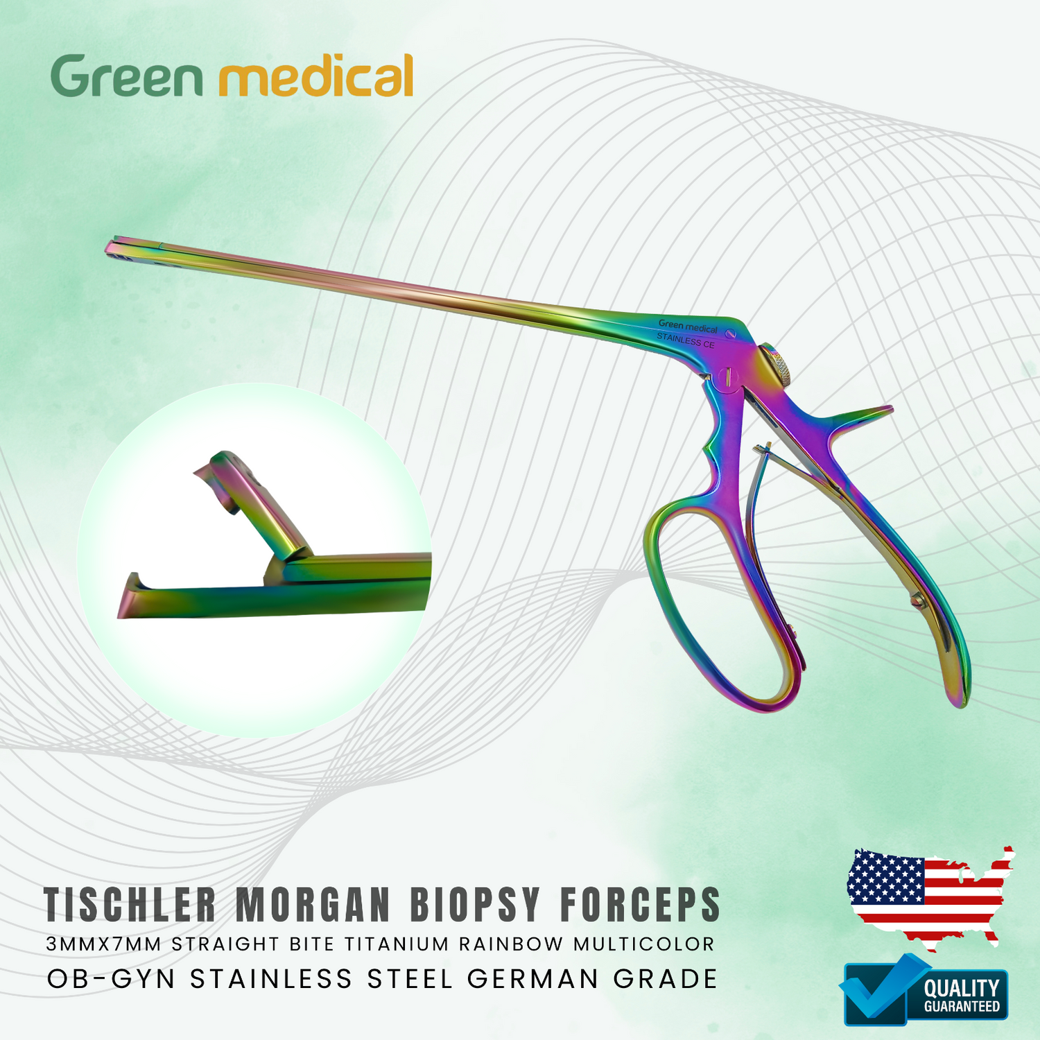 Tischler Morgan Biopsy Forceps 3mmx7mm Bite Titanium Rainbow Multi Color OB-GYN
